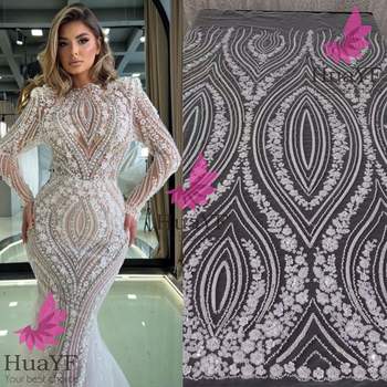 HY2488 encaje de malla de tela de lentejuelas con cuentas francesas blancas calientes para vestido de novia