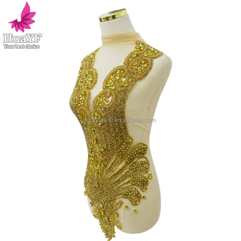 HY2511-7 Aplique de Corpete Decorado Dourado com Pedrarias Feito à Mão para Vestido de Festa